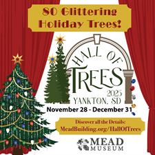 The public is invited to enjoy 80 beautifully, uniquely decorated Christmas trees on all three floors of the Mead Museum in Yankton South Dakota. Community businesses and organizations join together for this special tradition. This year's foyer theme is 1950s Red Carpet Christmas by LilyCrest - Framing, Décor & Gifts Gallery of Downtown Yankton.